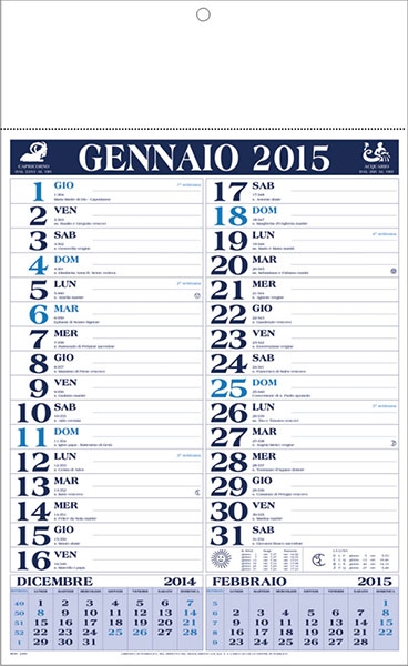 Calendario, blu e ciano, mensile 12 fogli, carta patinata, allestimento termosaldato. ...
