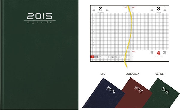 Agenda giornaliera, imbottita e rivestita - 320 pag., interno quadrettato, rubrica ...