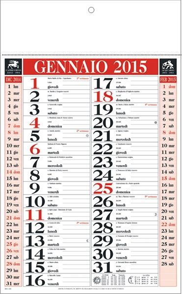 Calendario, rosso e nero, mensile 12 fogli, carta patinata, allestimento termosaldato. ...